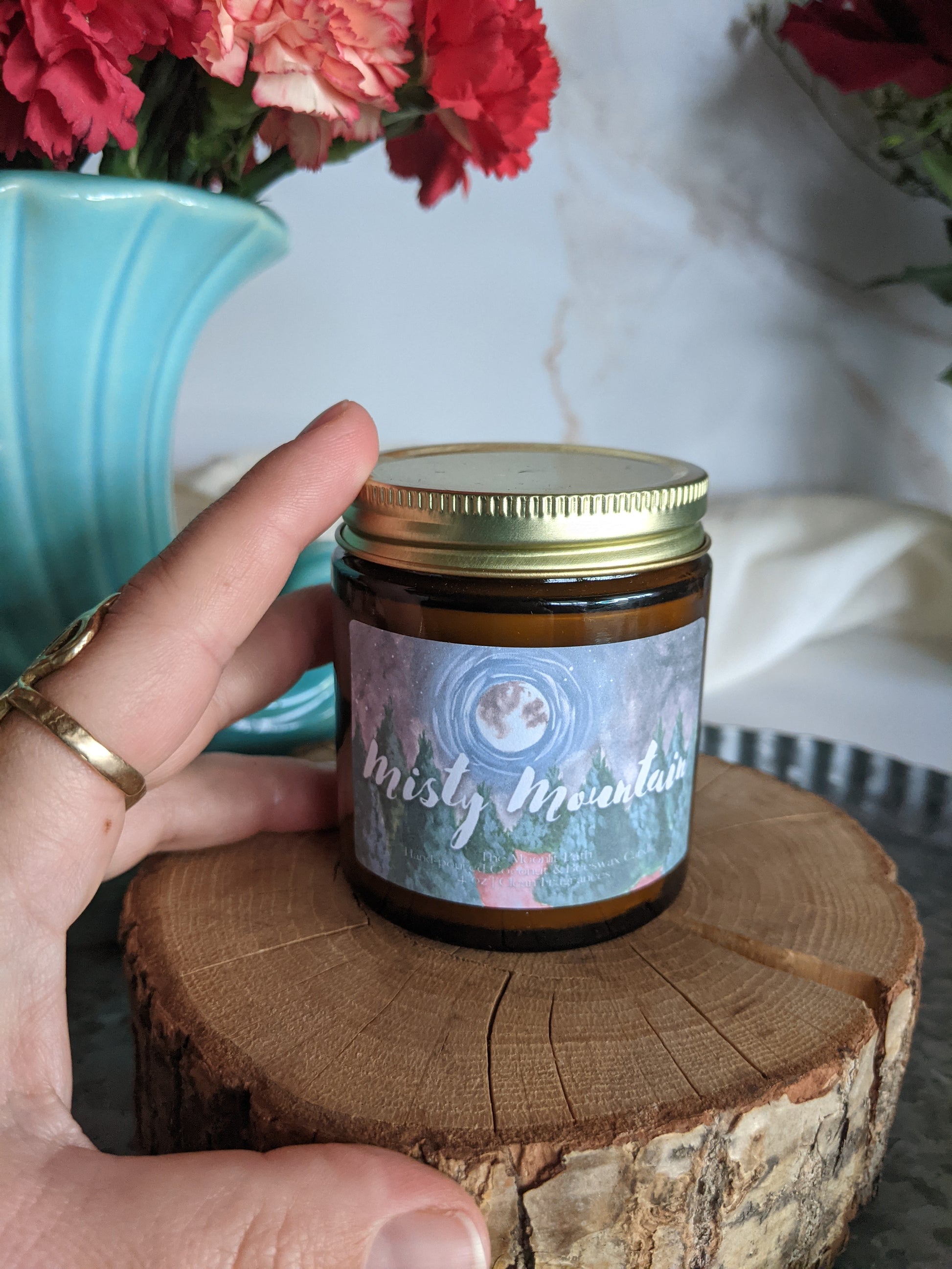 All of our Candles are hand-poured into apothecary inspired jars with our signature watercolor labels and a brass or cork lid.
